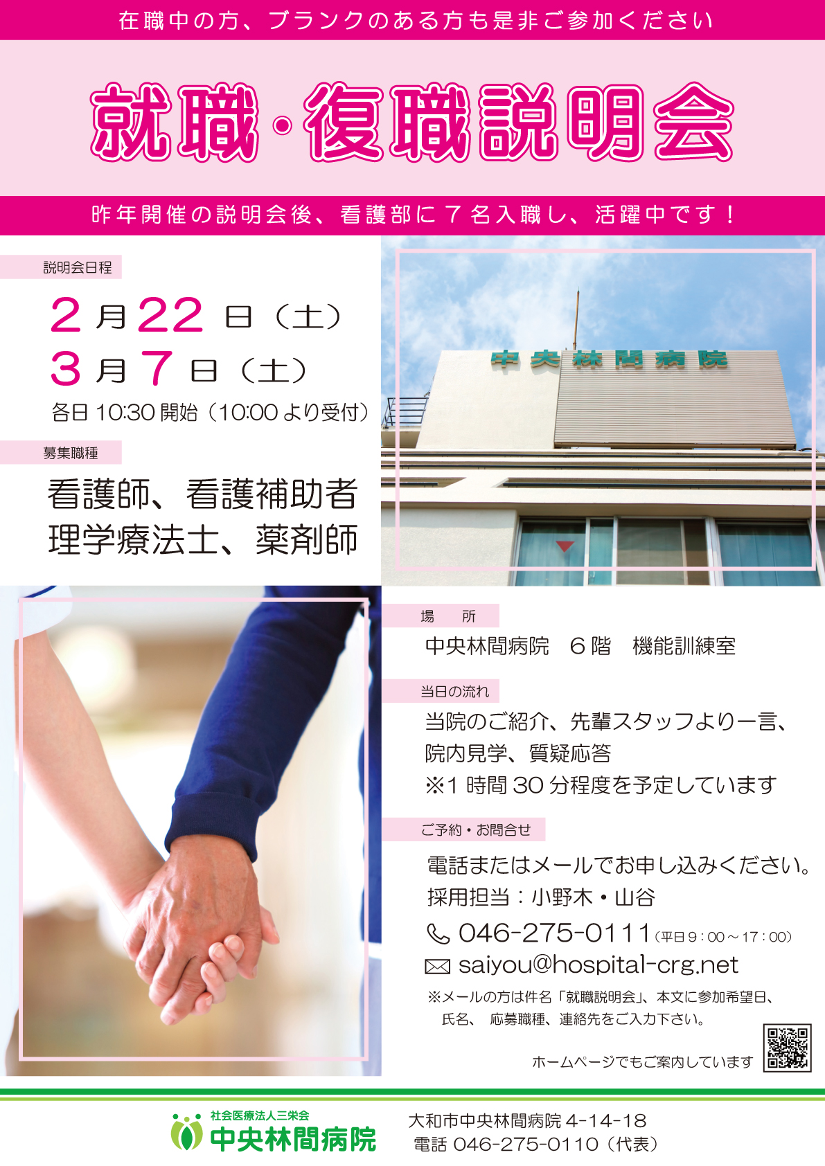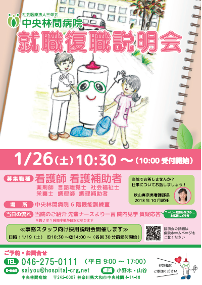 当院のご紹介、看護部のご紹介、お仕事内容の説明、先輩スタッフの体験談、