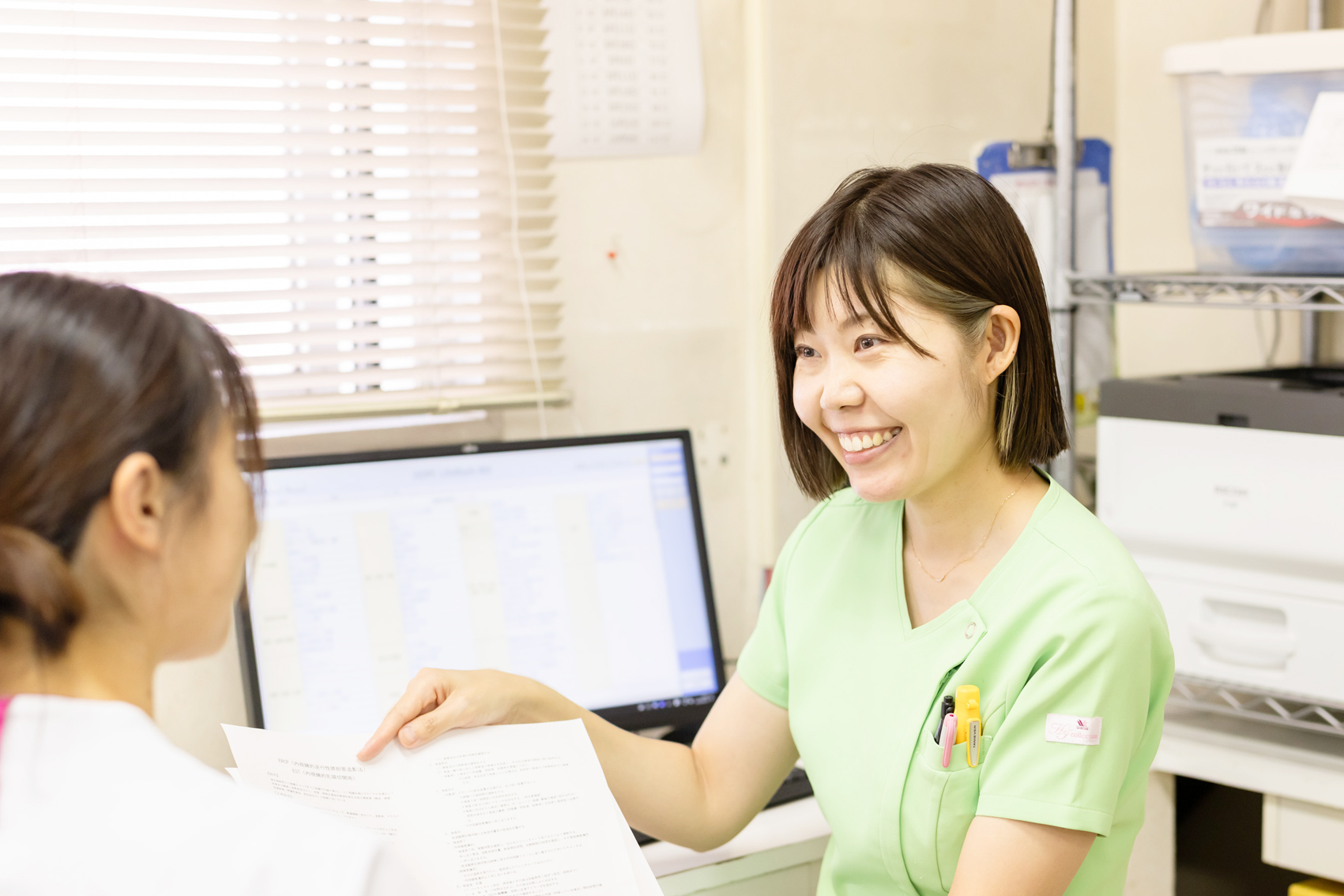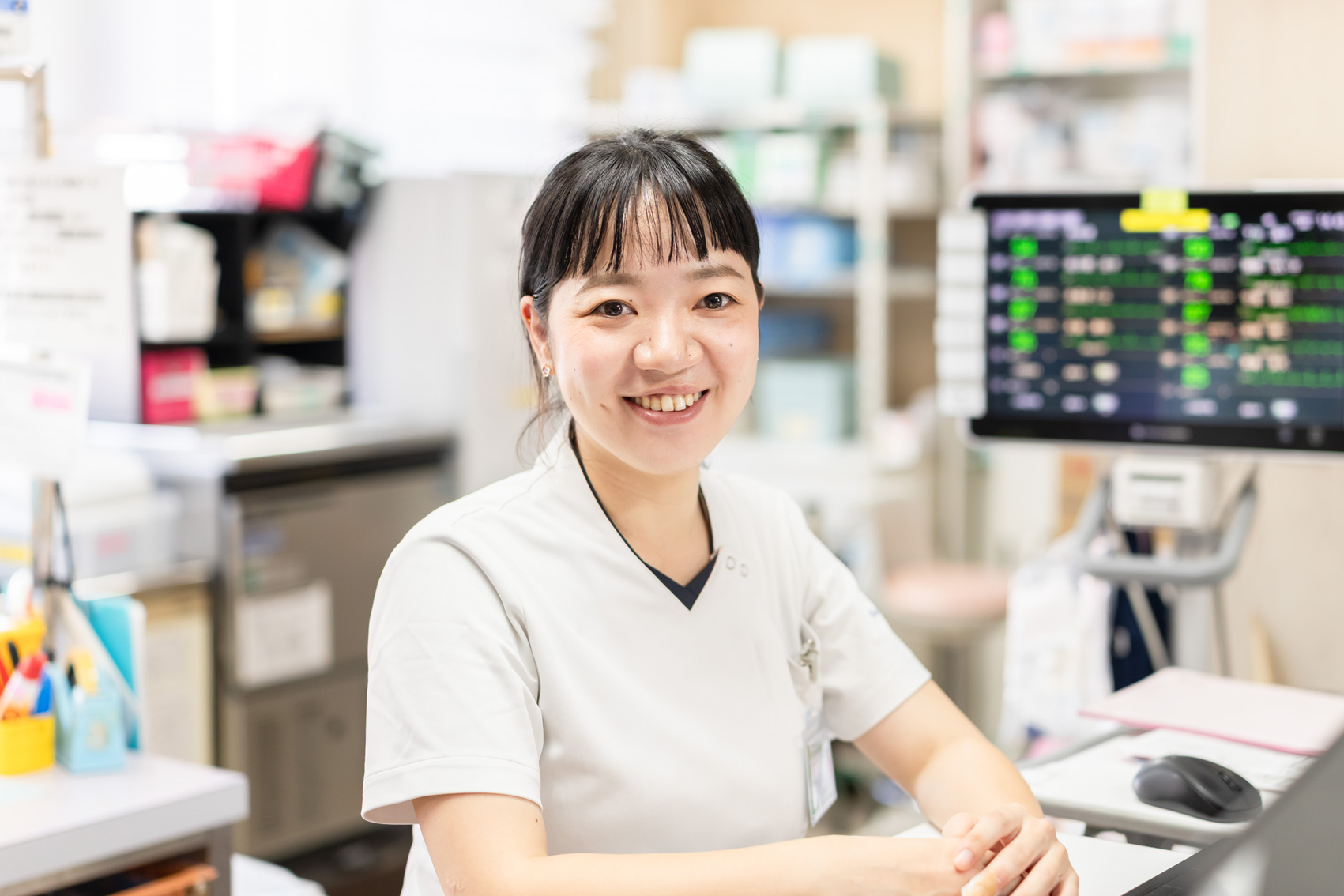 医師や看護師、多職種の人間関係が良いところが笑顔で働ける部分につながっていると思います。