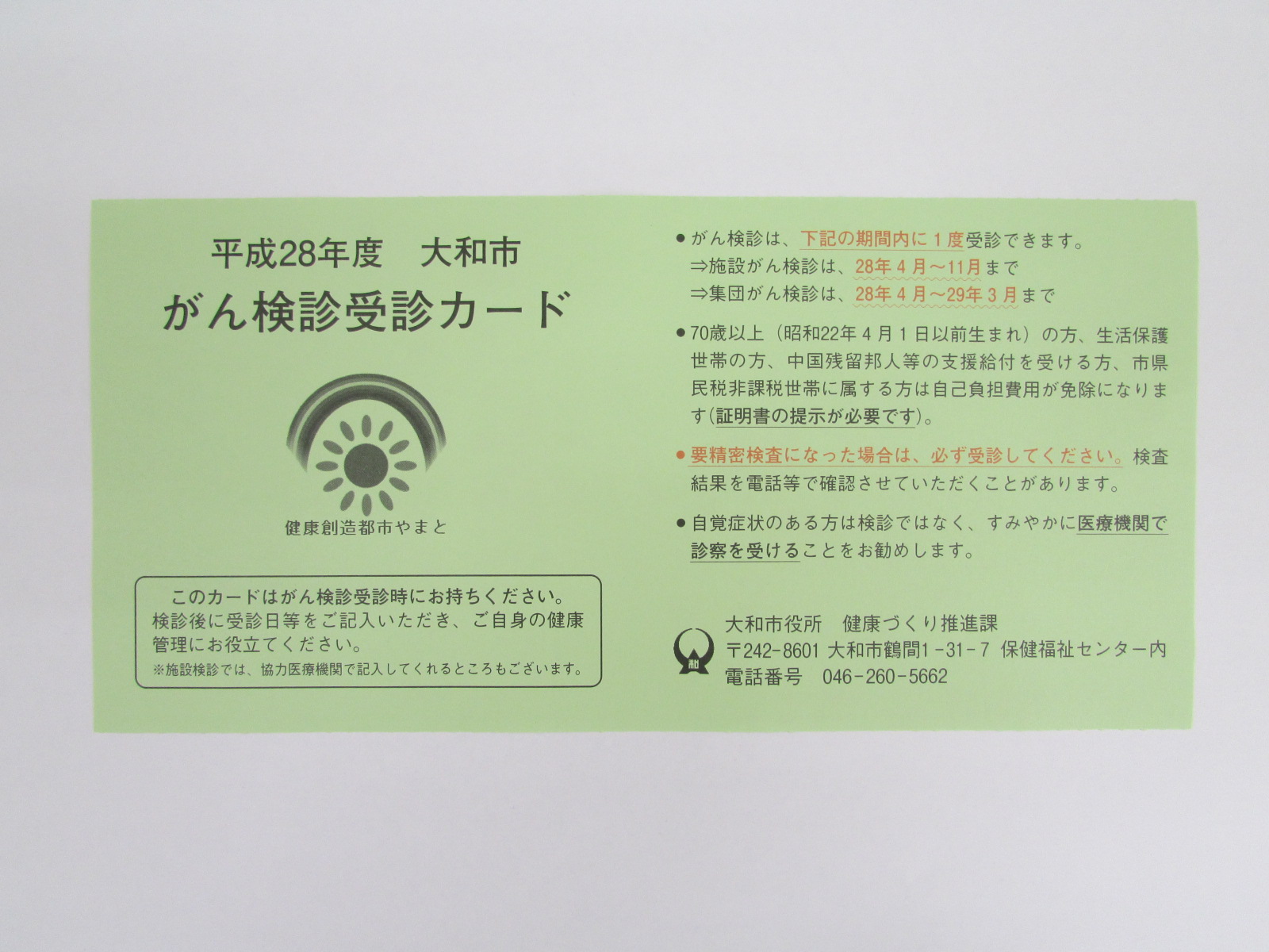 大和市在住の40歳以上の方には「がん検診 受診カード」が3月末頃に市役所から