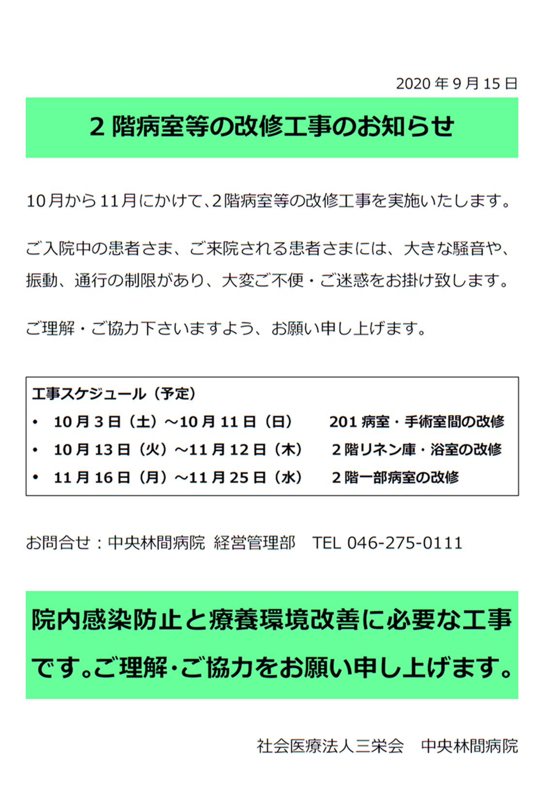 2階病室等改修工事のお知らせ01