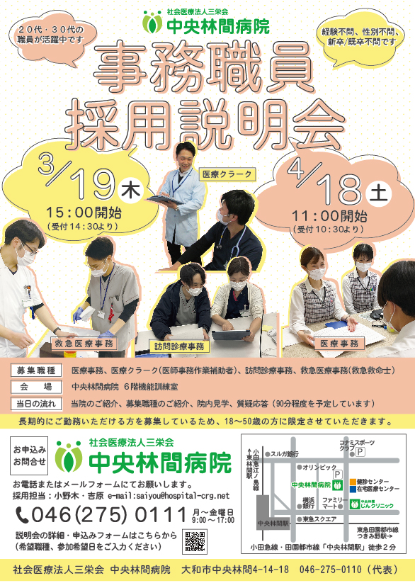 当院のご紹介、募集職種のご紹介、院内見学、質疑応答